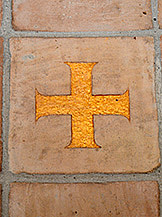 Sul pavimento in cotto è stata incisa una piccola croce greca, che vuol essere il punto focale per osservare l'opera parietale senza le deformazioni curve della superficie e di alcuni impedimenti quali il tirante strutturale e il sottile filo della campana.